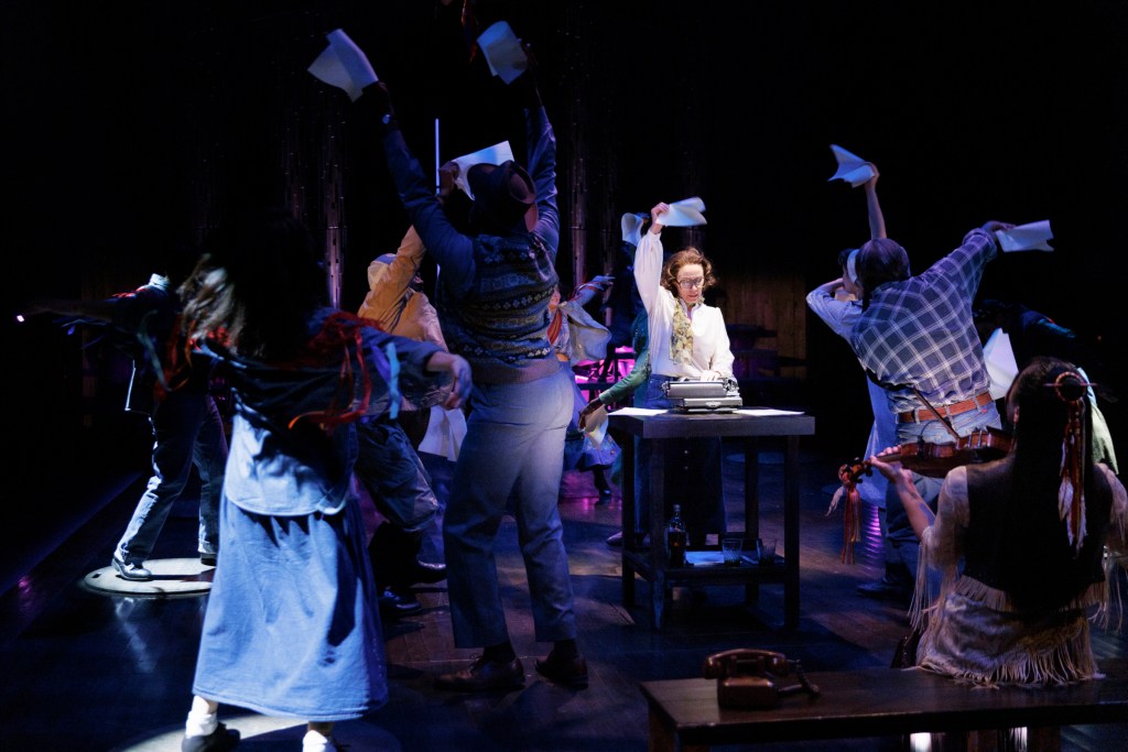 Having actors play multiple roles across the present, past and in the stories told by other characters also contributes to that dreamlike feeling just as familiar faces can take on different roles when we are told stories about people from the past. And, having those same actors and characters from the past deliver pages of Morag’s book to her seated at her typewriter in the play’s present day truly makes all the sense in the world.